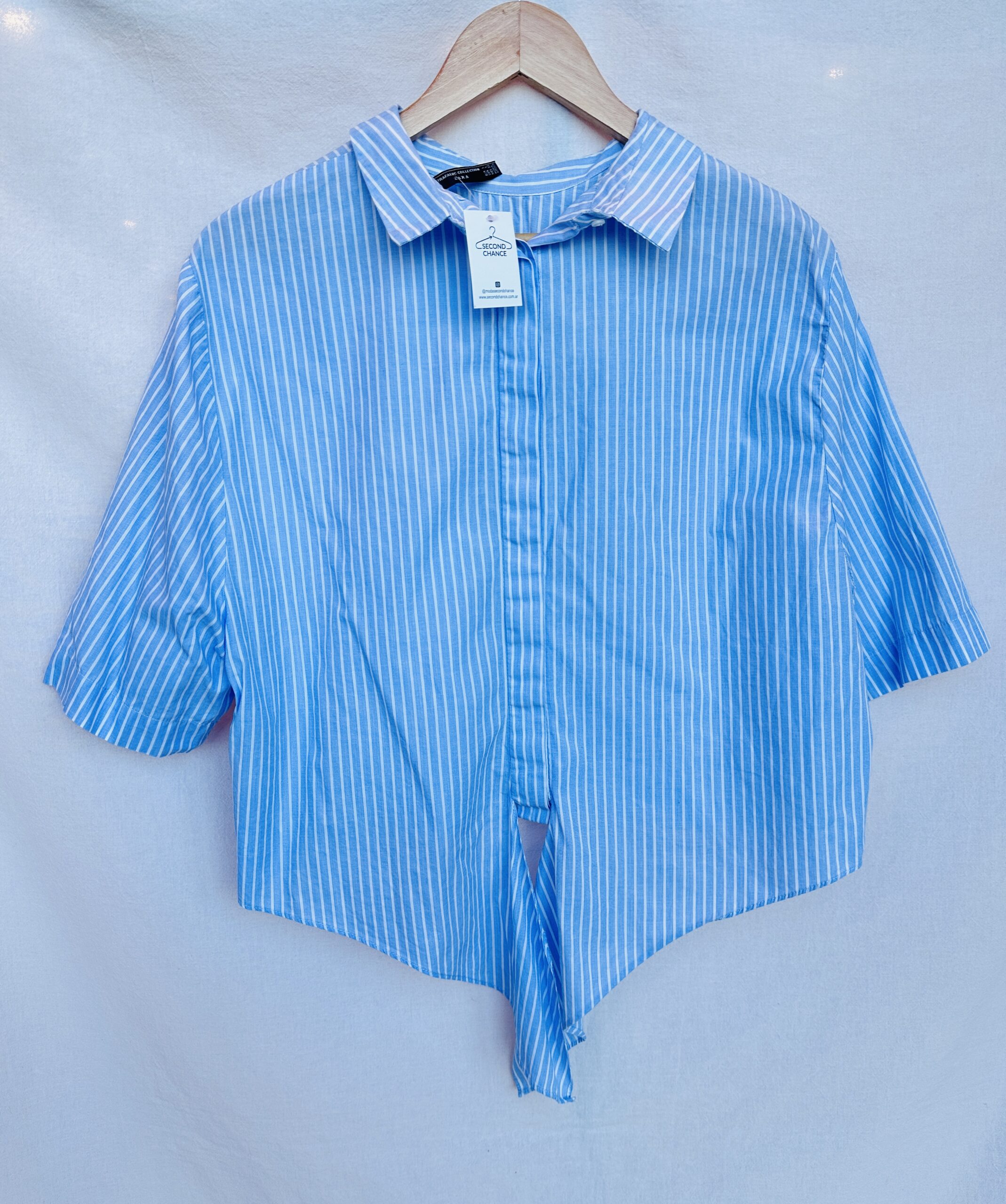 CAMISA A RAYAS CELESTE ZARA (L)