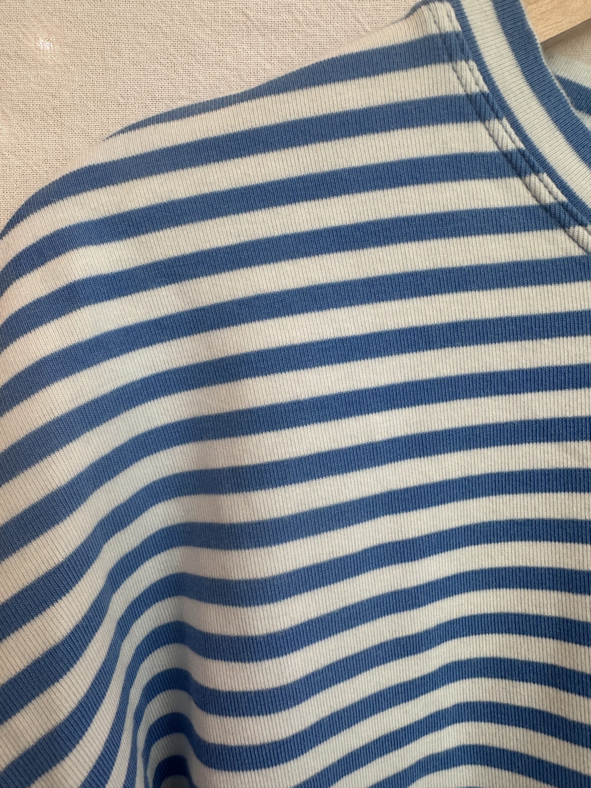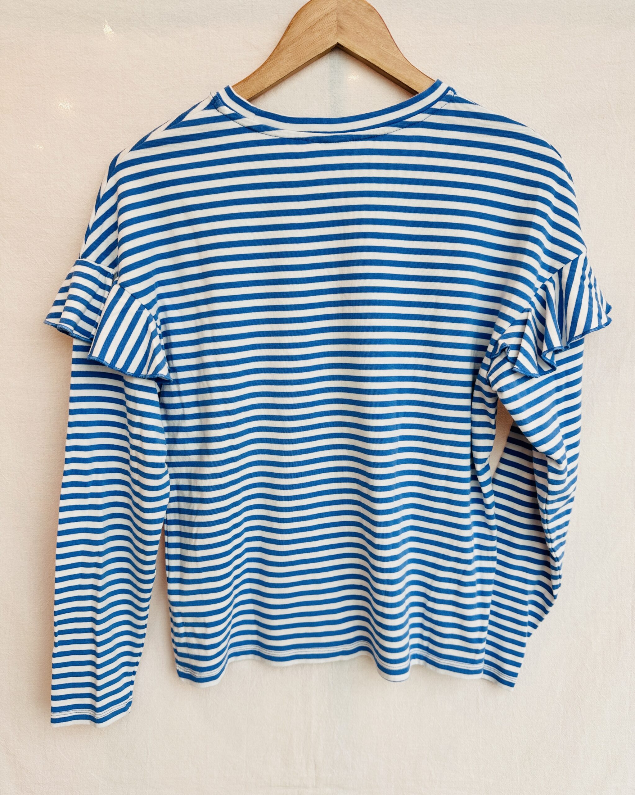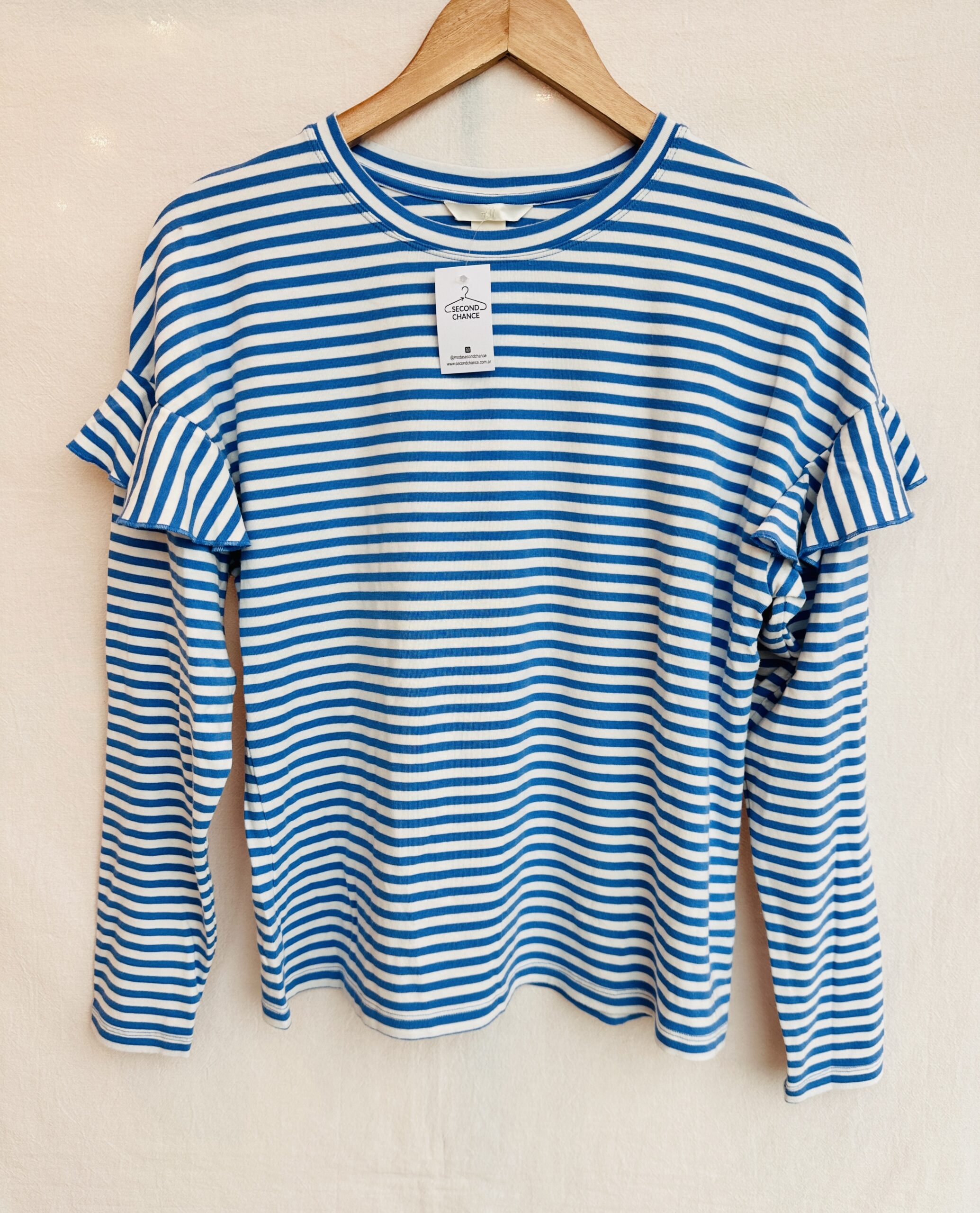 CAMISETA A RAYAS CELESTE CON VOLADOS H&M (M)
