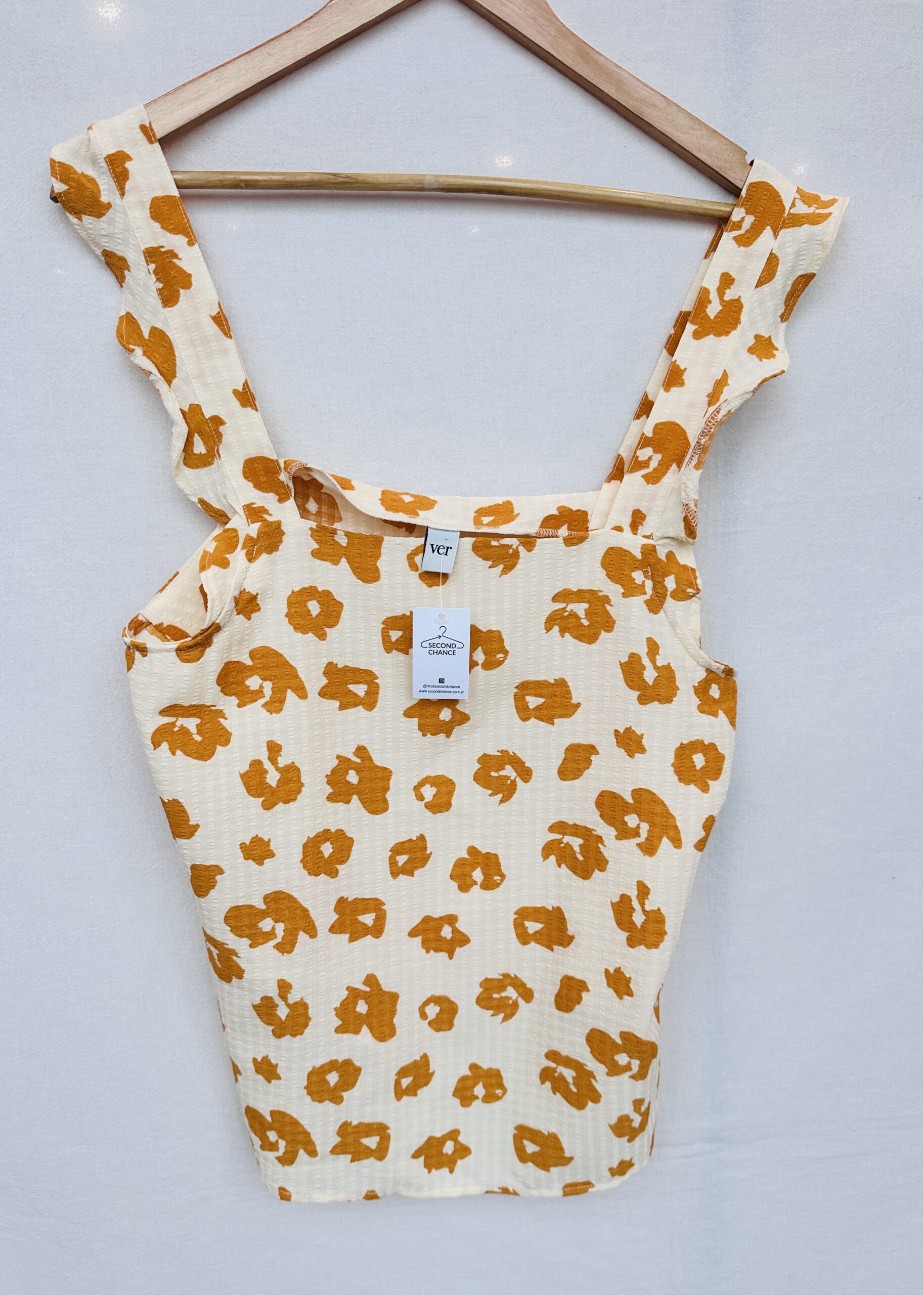 MUSCULOSA CREMA + ESTAMPA+ VOLADOS VER (L)
