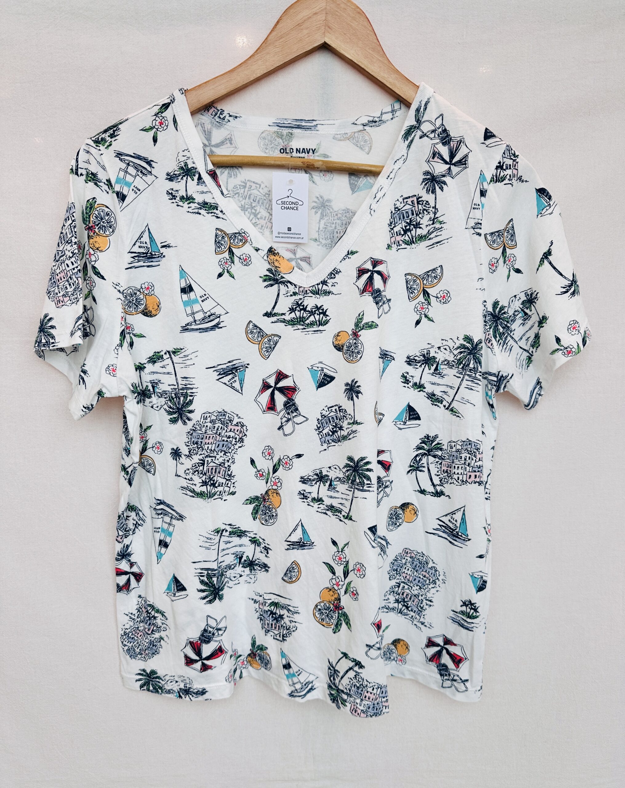 REMERA BLANCA + ESTAMPA OLD NAVY (L)