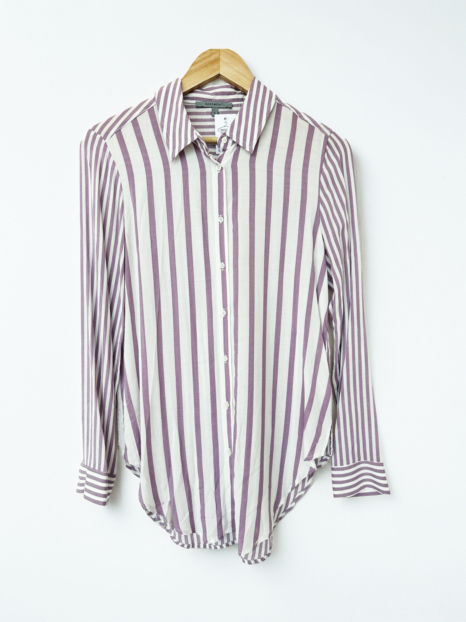 ¡Estilo único con un toque de color! Esta camisa de BASEMENT con rayas violetas es perfecta para quienes buscan un look moderno y lleno de energía. Confeccionada en viscosa, es ligera, suave y cómoda, ideal para un día relajado o una salida casual pero con estilo ✨