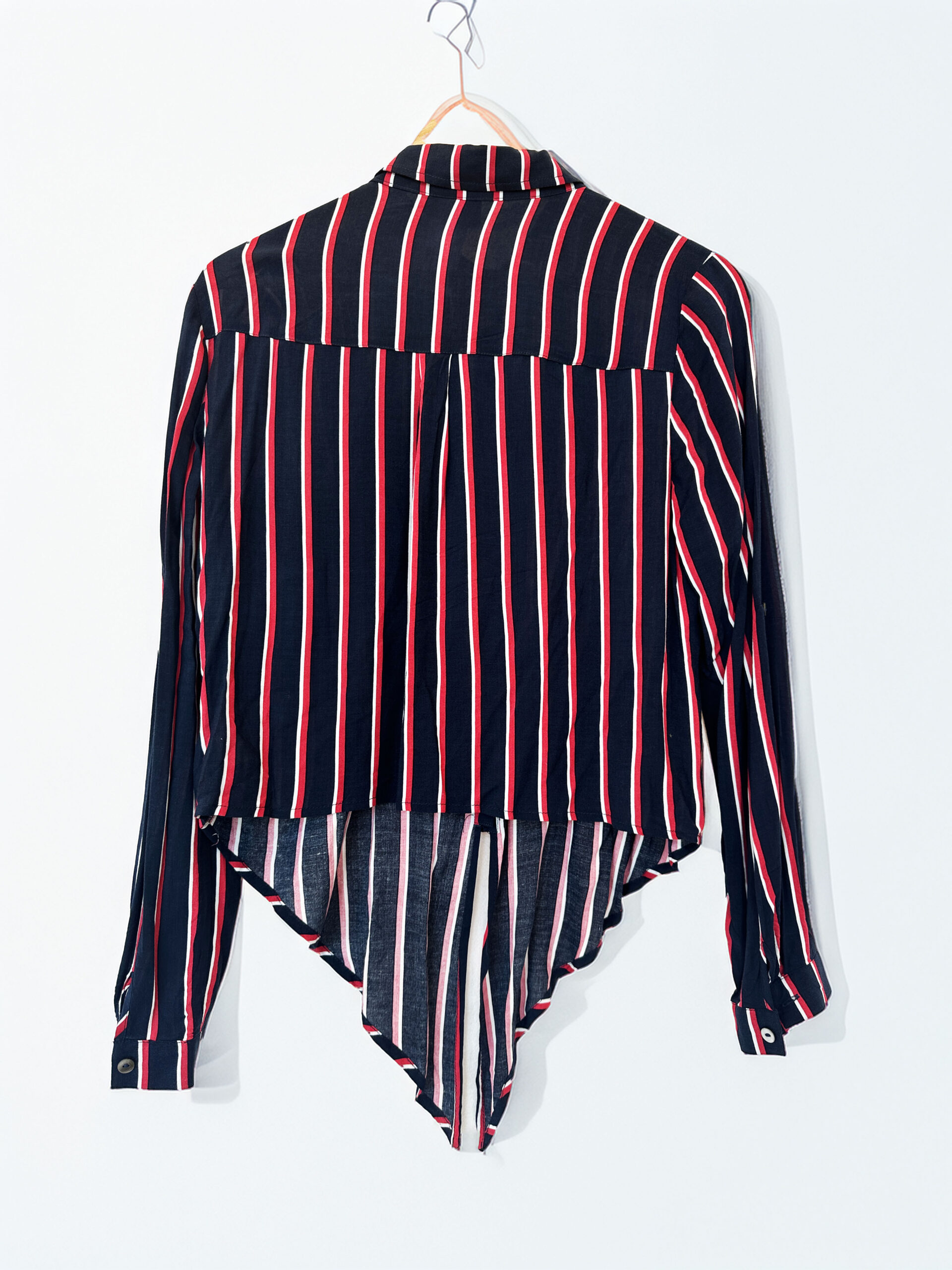 Una prenda infalible con estilo urbano y relajado Las rayas en azul y rojo le dan un aire cool, perfecto para combinar con jeans, faldas o incluso usar abierta con una remera básica abajo.
