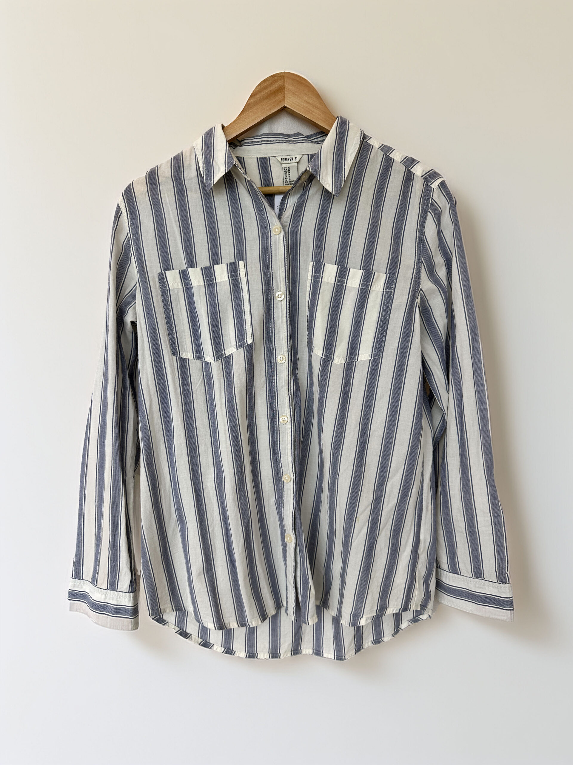 CAMISA RAYADA CELESTE FOREVER 21 (M)