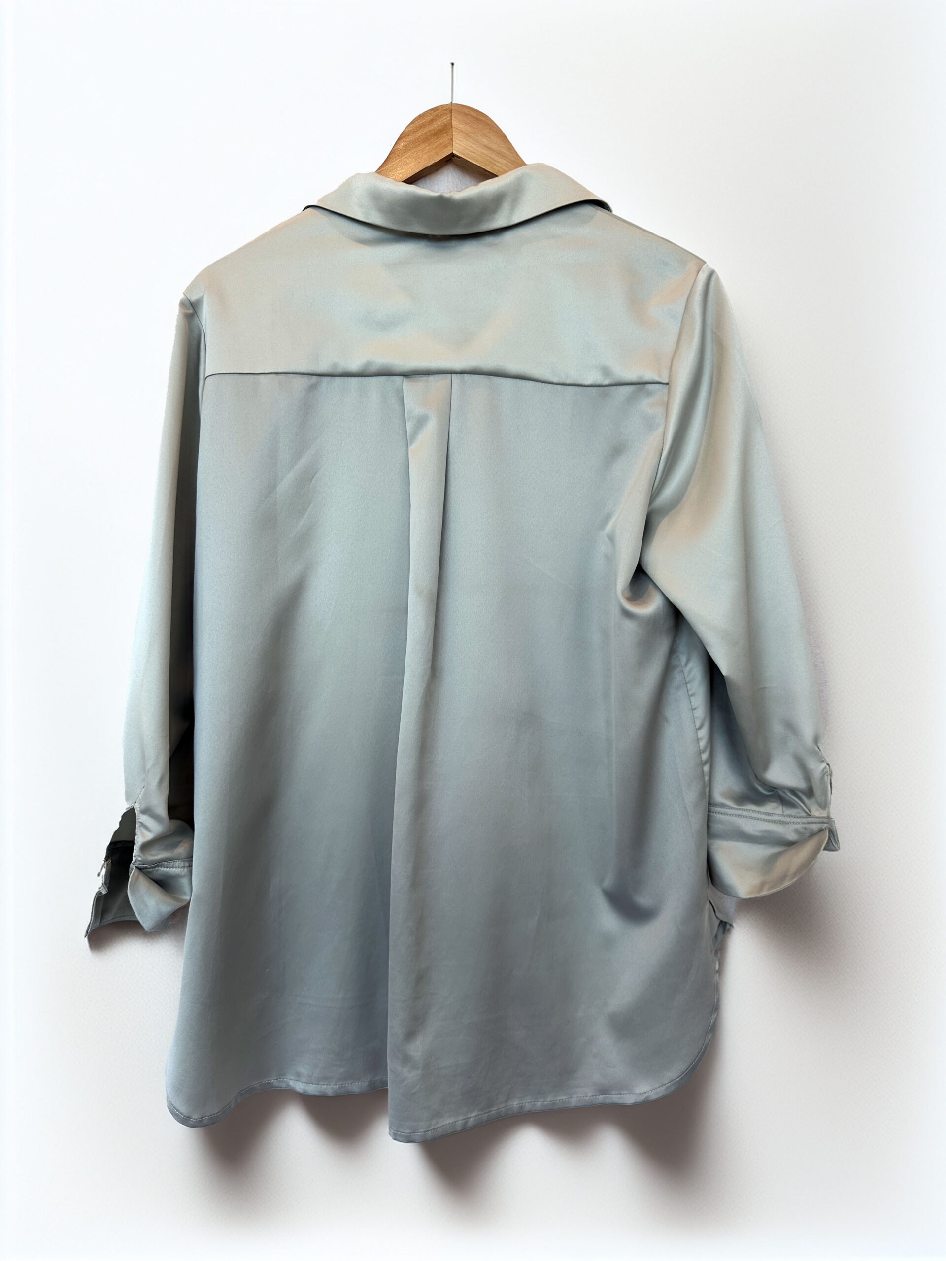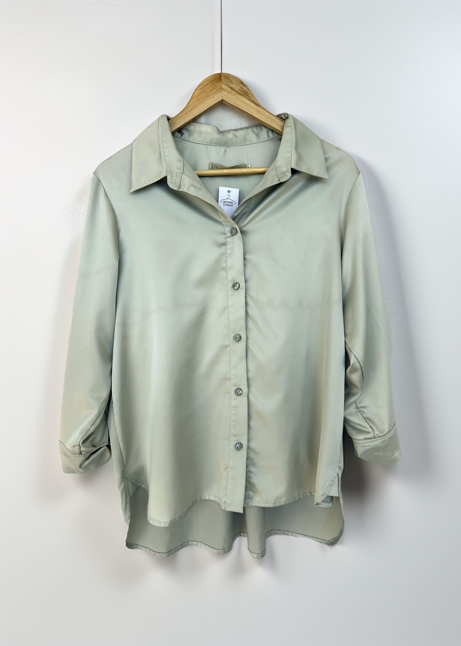 ¡Elegancia con un toque de brillo! ✨ Esta camisa de satén verde de la marca P es ideal para lucir sofisticada y con estilo en cualquier ocasión. Su acabado satinado le da un aire glamoroso y moderno, perfecta para salir de lo común y destacar