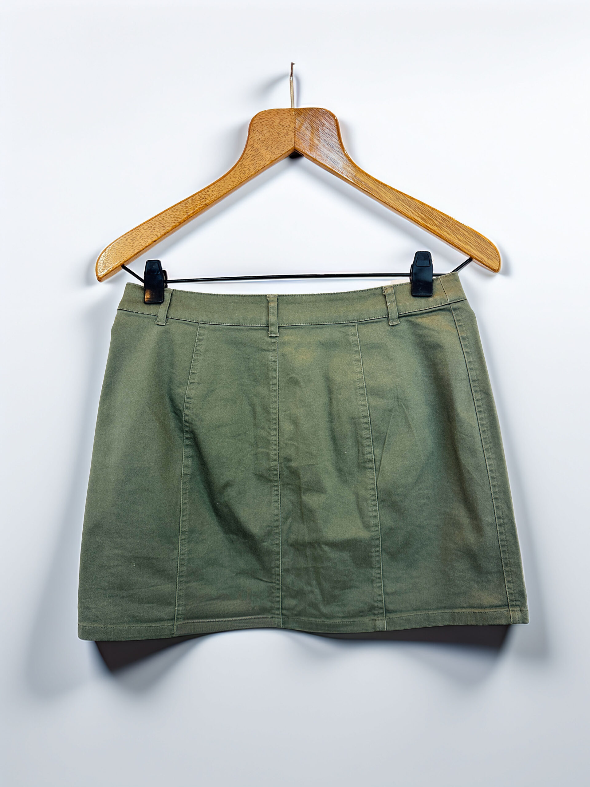 Con su tono verde militar y diseño moderno, esta mini femenina es perfecta para armar outfits con estilo urbano o casual. Su corte ajustado resalta tu figura, y es ideal para combinar con una camisa, un top o hasta una chaqueta de cuero.