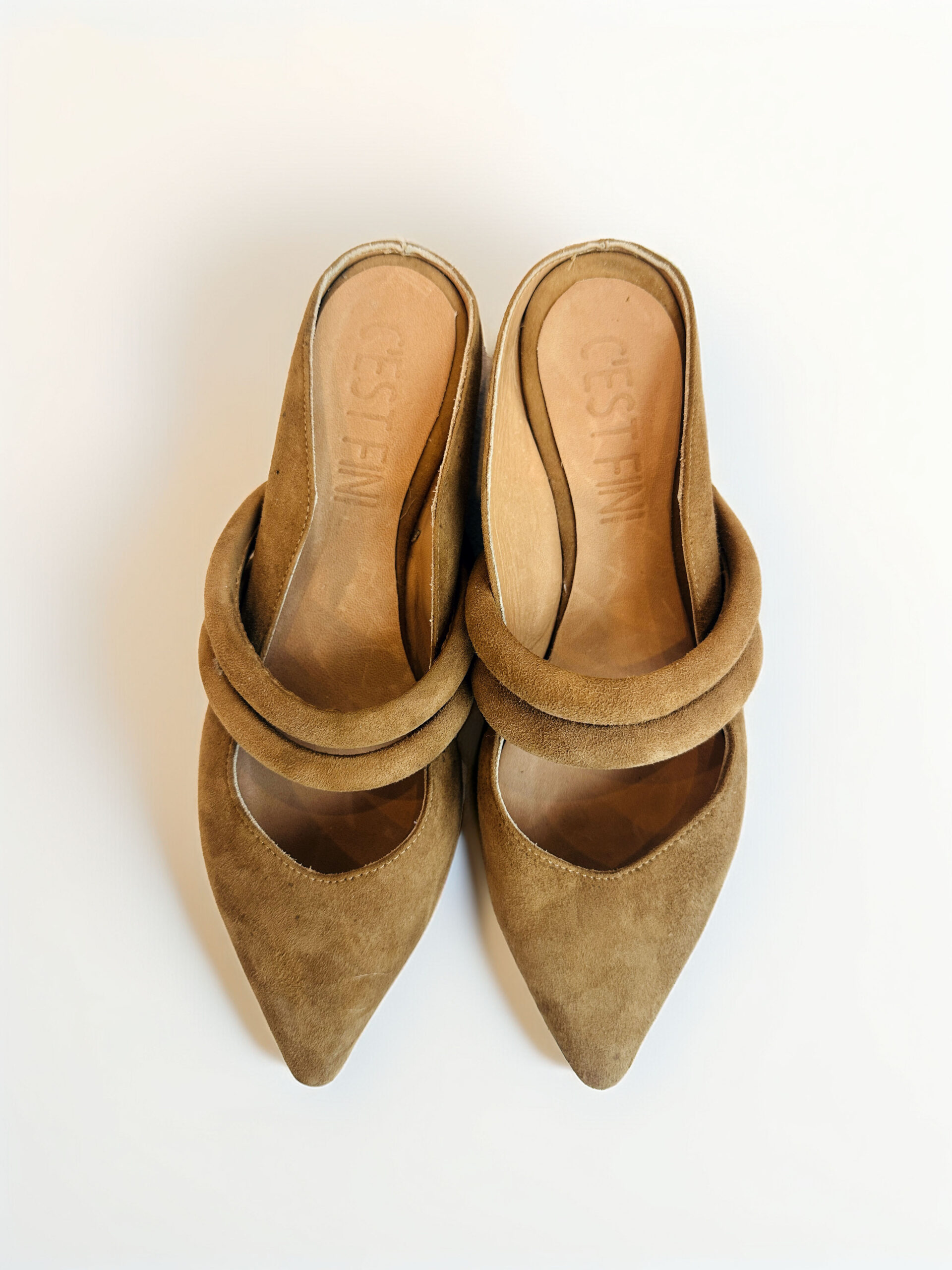 ¡Minimalismo con mucha clase! Las Mules de Gamuza color Moka de C’est Fini son el complemento ideal para un look relajado pero con estilo. Su diseño abierto y limpio, en cuero gamuzado color camel, las convierte en un básico versátil, cómodo y súper elegante para los días cálidos. ✨