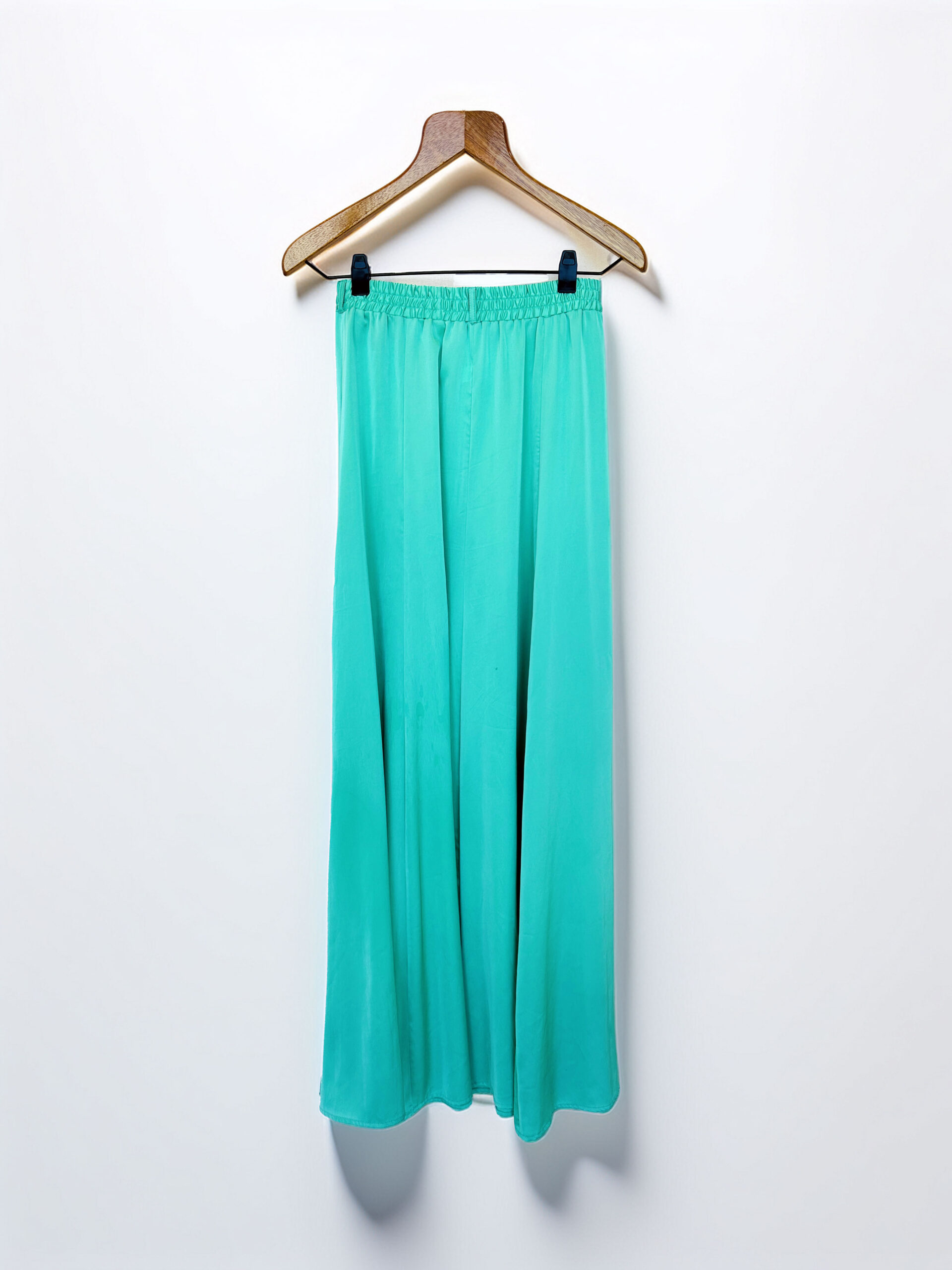 Con un brillo sutil y una textura liviana, esta falda femenina en tono verde sedoso aporta movimiento y sofisticación a cualquier look. Ideal para combinar con tops delicados o camisas relajadas, y brillar en cualquier ocasión.