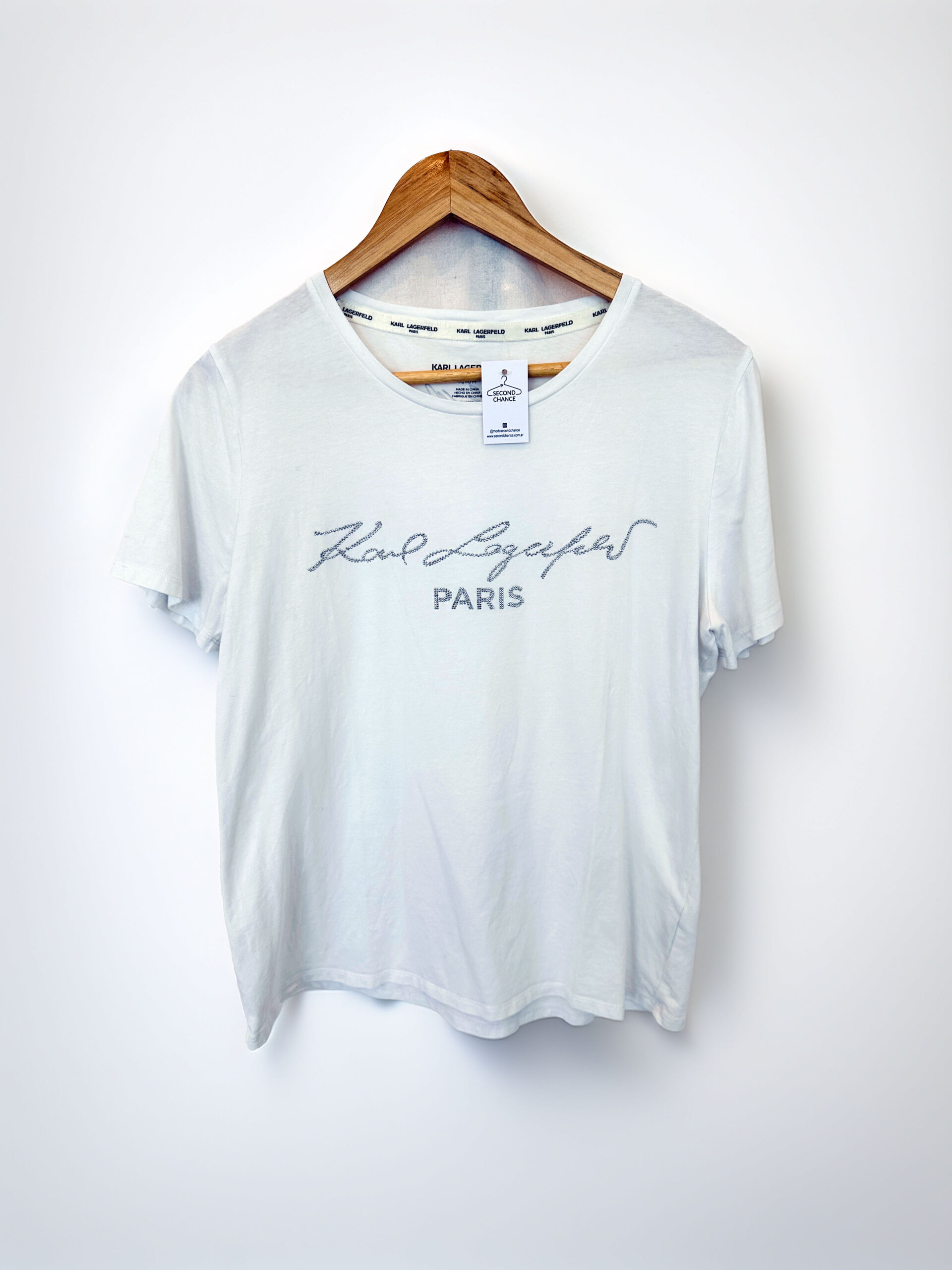 ¡La Remera Blanca Básica de KARL LAGERFELD es el esencial que no puede faltar en tu armario! ✨