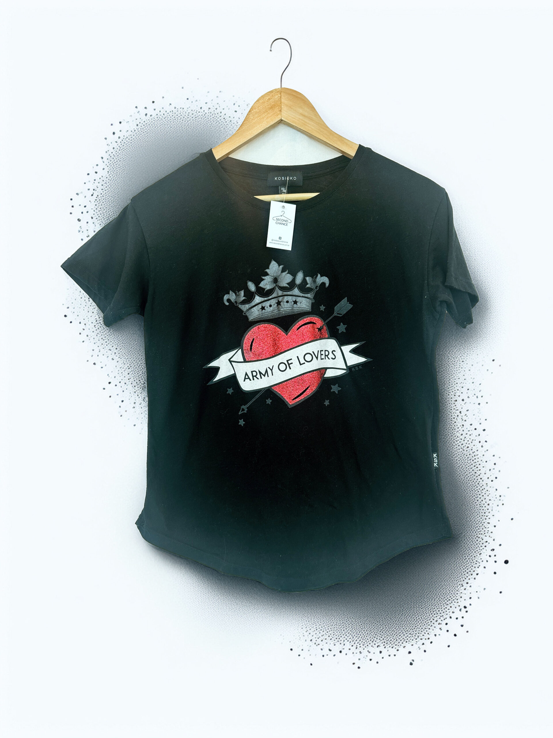 REMERA NEGRA CORAZON BRILLO KOSIUKO (M)