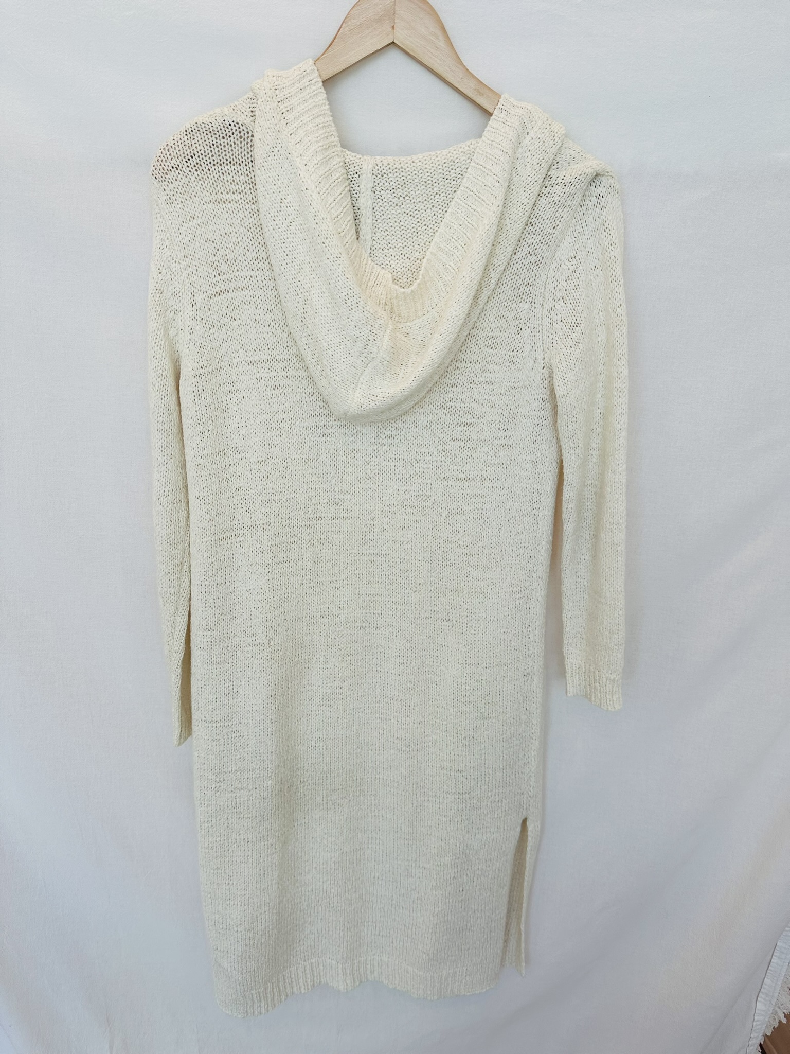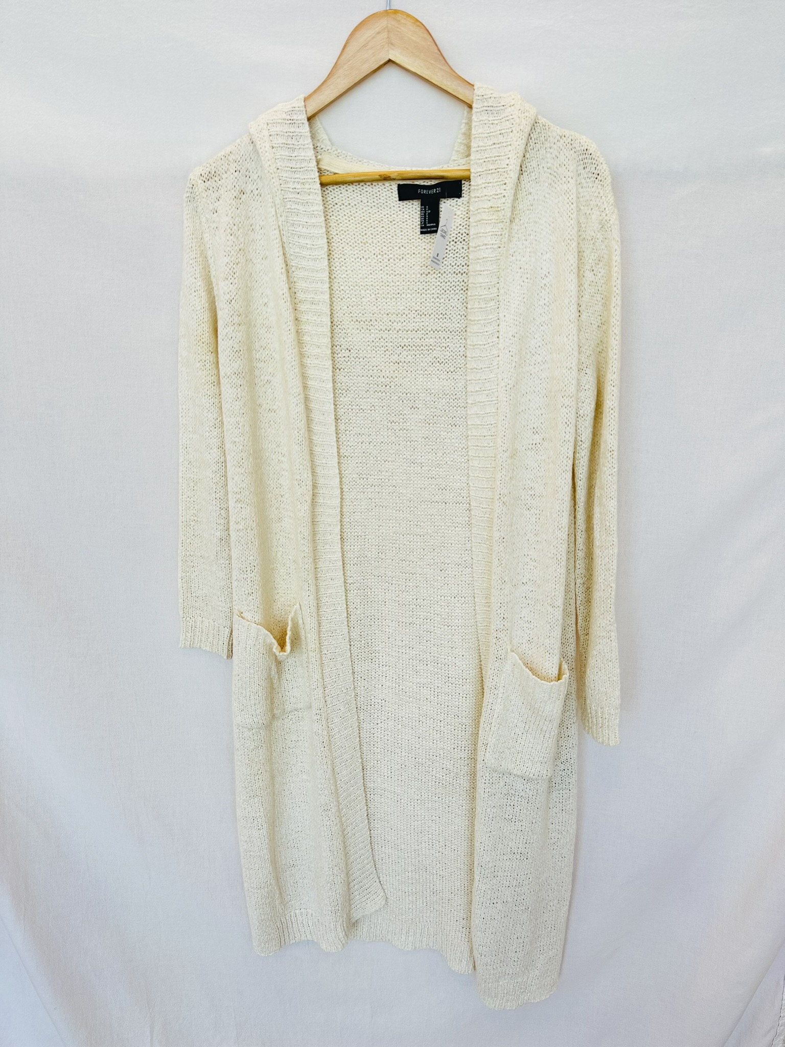 Sofisticado y liviano, ideal para todo el año Este saco largo de hilo en color crema es perfecto para esos días de entretiempo. Su material suave y su diseño clásico lo convierten en una prenda clave para tu guardarropa.
