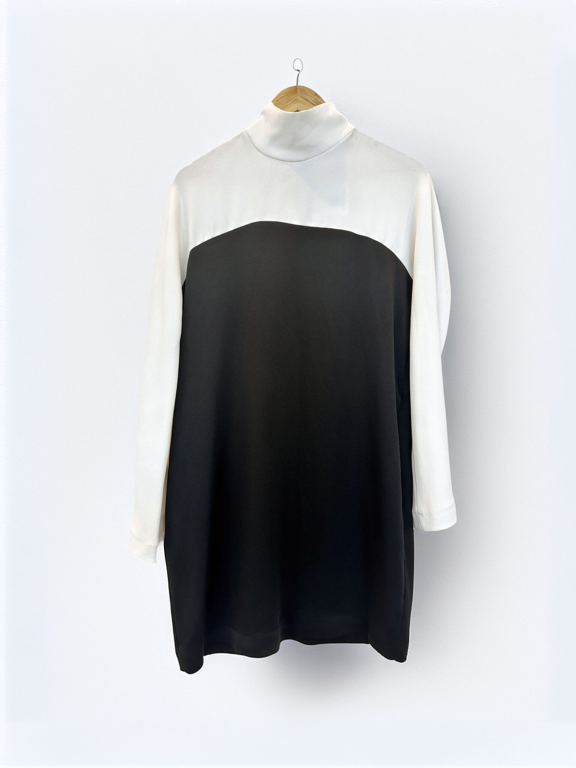 ✨ Características: Cuello alto, diseño bicolor, ideal para eventos formales o looks urbanos chic.
